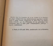 Paris Julliard 1946 Grand In8 - broché - 332 pages - papier jauni - petit manque de papier a la coiffe supérieure et au 1er plat - Étiquette de Julliard contre-collée a la page de titre anciennement Gallimard .Envoi autographe signé de Louise Weiss en 1950 en page de garde - Mention de 5e édition ( Gallimard ) revendue par Julliard en 1949 .