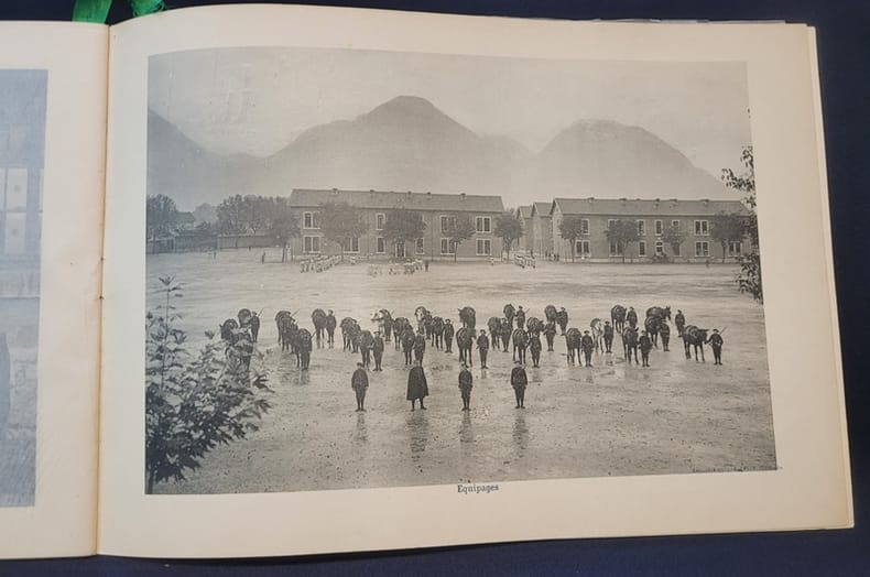 Charleville Gelly 0 In4 oblong - broché - presque à l'état de neuf - Album comportant 20 grandes photographies sous serpentes du 28e bataillon de chasseurs alpins montrant divers photos de groupe ou in situ dans les montagnes .