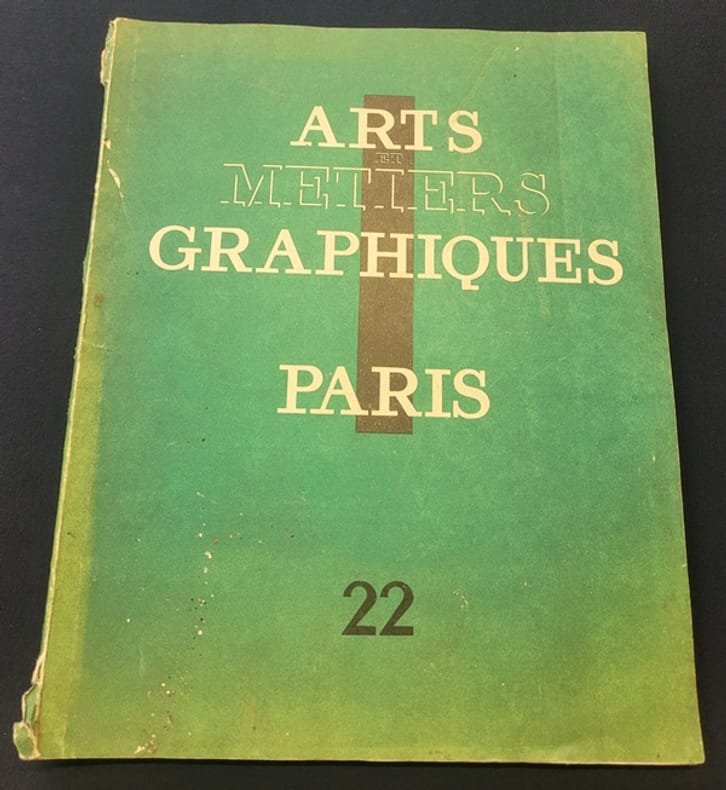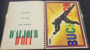 Montrouge Draeger 0 s.d. [1935]. In4, non paginé, reliure plastique SGDG, couverture blanche, titre en partie gaufré, en partie imprimé en rouge, noir, vert, dans une large typographie entretenant l'effet de relief - 15 affiches de A.M. Cassandre reproduites en noir et blanc ou en couleurs , introduction de Blaise Cendrars imprimée en vert, rouge et noir, pour le texte, beau travail typographique en 3 couleurs - Quelques rousseurs aux premiers feuillets et aux plats particulièrement au 4e . Recueil célèbre composé de la reproduction de 15 affiches, dont quatre en couleurs de l'artiste Cassandre, dont le texte de Cendrars fait l'éloge "... je lui suis reconnaissant d'avoir découvert dans la publicité la fleur de la vie contemporaine, [...] une affirmation d'optimisme et de santé, la plus chaleureuse manifestation de la vitalité des hommes d'aujourd'hui..." On y retrouve les plus célèbres de ses affiches : celle du Normandie ou de l'Étoile du Nord (grand prix de l'affiche de 1927) , "Au bûcheron" (primée à l'Exposition internationale des arts décoratifs), et encore l'affiche en trois partie pour Dubonnet. Sans doute une des plus belles publications publicitaires jamais réalisées.