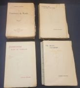 Paris Mercure de France 0 8 volumes en éditions originales sur grands papiers de Georges Duhamel . - La possession du monde - Mercure de France - 1919 - sur Hollande ( 3e papier ). -Confession de minuit - Mercure de France -1920 - sur vergé Lafuma ( 2e papier ) - débroché . -Tel qu'en lui mème ... - Mercure de France- 1922 - sur vergé Lafuma ( 4e papier ) - Deux hommes - Mercure de France - 1924 - sur vergé d'Arches ( 2e papier ) - Remarques sur les mémoires imaginaires - Mercure de France - 1924 - sur vélin Lafuma ( 2e papier ) - Entretiens dans le tumulte - Mercure de France - 1925 - sur vergé Lafuma ( 3e papier ) - Scènes de la vie future - Mercure de France - 1930 - sur Vergé Montgolfier ( 4e papier ) - petites traces au 1er plat - Discours aux nuages - Éditions du siècle - 1934 - sur Hollande ( 2e papier ) Tous, sauf le dernier , non coupés , non ébarbés .