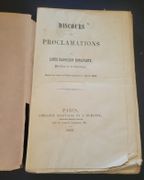 Paris Charpentier 1851 Grand In8 - broché - 221 pages - curieuse fausse page de titre Discours de Louis Napoléon Bonaparte suivi de la vraie page de titre ( facétie de l'imprimeur ?) ... - Dos cassé avec important manque de papier - manque également de papier au 4e plat - méritera une reliure .