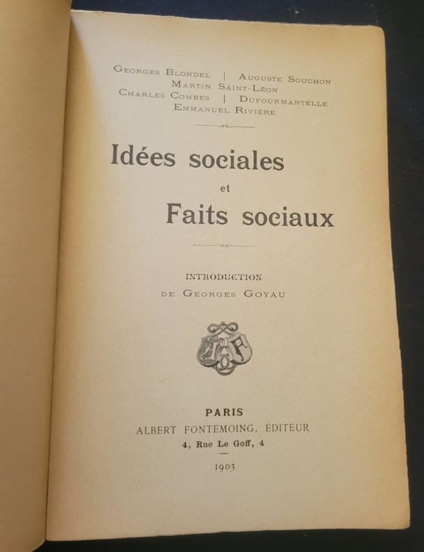 Paris Fontemoing 1903 In8 - broché - 228 pages - conférences données en 1902 par Georges Blondel / Auguste Souchon / Martin Saint Léon / Charles Combes / Dufourmantelle / Emmanuel Rivière .