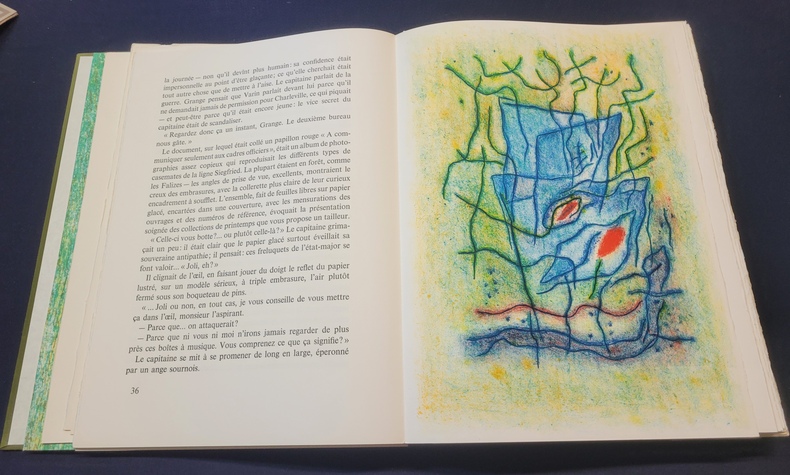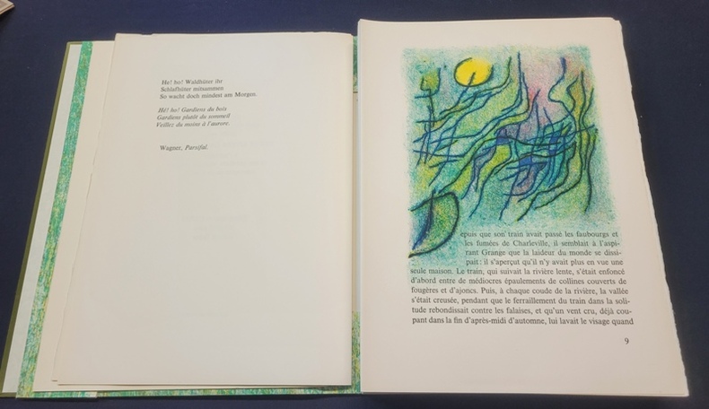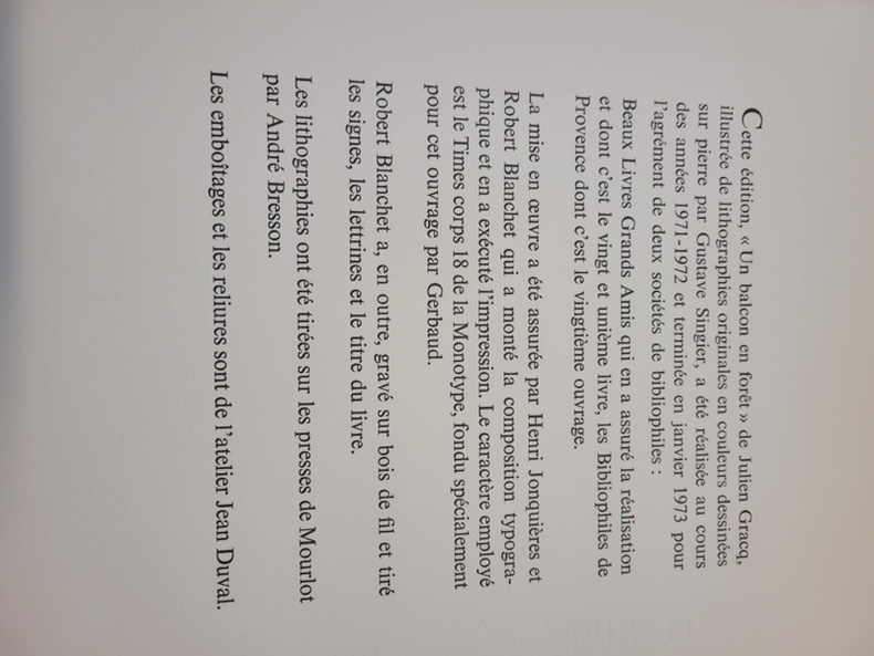 Bibliophiles de Provence & Beaux Livres Grands Amis 1973 Grand In4 ( 36 X 26 cm ) en feuilles sous emboîtages toilé - Lithographies de Gustave Singier et Bois gravés de Robert Blanchet - Tirage à 415 Ex celui ci numéroté sur pur fil de Lana - Bien complet des 2 fascicules de Claude Cherrier sur Gracq et de Jean Lescure sur Singier .trés légères traces à l'emboîtage