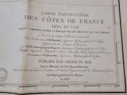 Depot général de la Marine 1843 Format 108cm X 74 cm - pliée en huit - rousseurs - petits manques sur certains plis - Montre l'île du Levant , de Port-Cros et de Porquerolles .